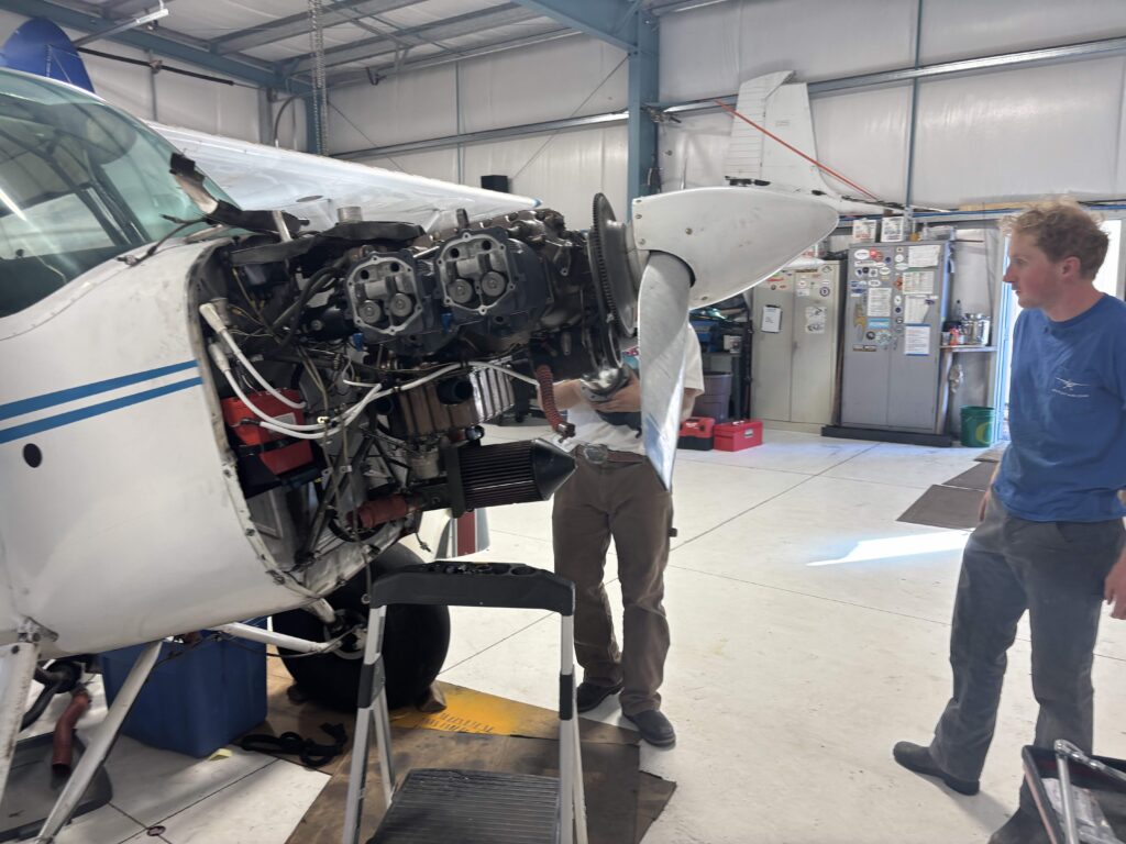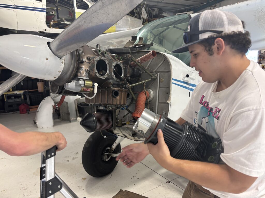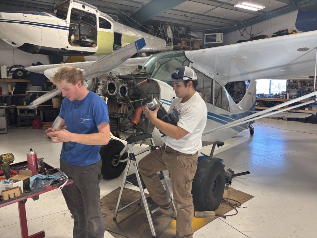 Max and I decided to leave the bottom end of the O-235 alone and just put new cylinders on the Champ. These cylinders came with the Champ when we bought it and for good reason. You always end up educating yourself when you go down the rabbit hole, one thing we learned is that all O235’s are not the same and things change to engine design as time goes on. One thing we found with the O235 is that Lycoming went from a 4 ring low compression piston, which we had, to a 3 ring piston 8.5 compression piston, then from a aluminum push rod to steel, (the steel pushrods are shorter) then we up graded the carburetor..not to mention Max port and polished the cylinders….changed the timing to 20 degrees and maybe we might get 118 HP, up from a 100. I have found with airplanes there is nothing time and money can’t fix… I just have to remind myself I am in this business to make money…Oh and the other soon to be mechanic is Danny O…..
